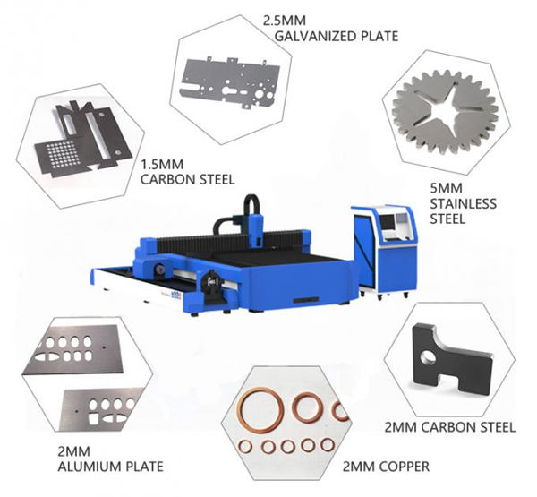 * Специально используется для резки углеродистой стали 0,5-6 мм, нержавеющей стали 0,5-5 мм, оцинкованной стали, стального листа с электролитическим цинковым покрытием, силиконовой стали и других видов тонких металлических листов. 1000 Вт может резать алюминий 3 мм и медь 2 мм.